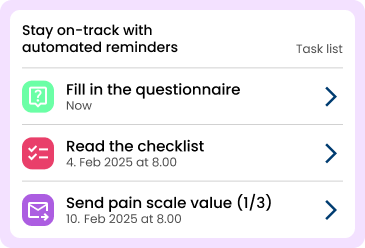With automated reminders and in-app questionnaires, the app ensures that patients are always up to date on their next steps. It reduces the need for phone calls and in-person visits by allowing healthcare providers to remotely track patient progress. This streamlined communication fosters a more efficient, standardised, and supportive care experience for both patients and healthcare teams.